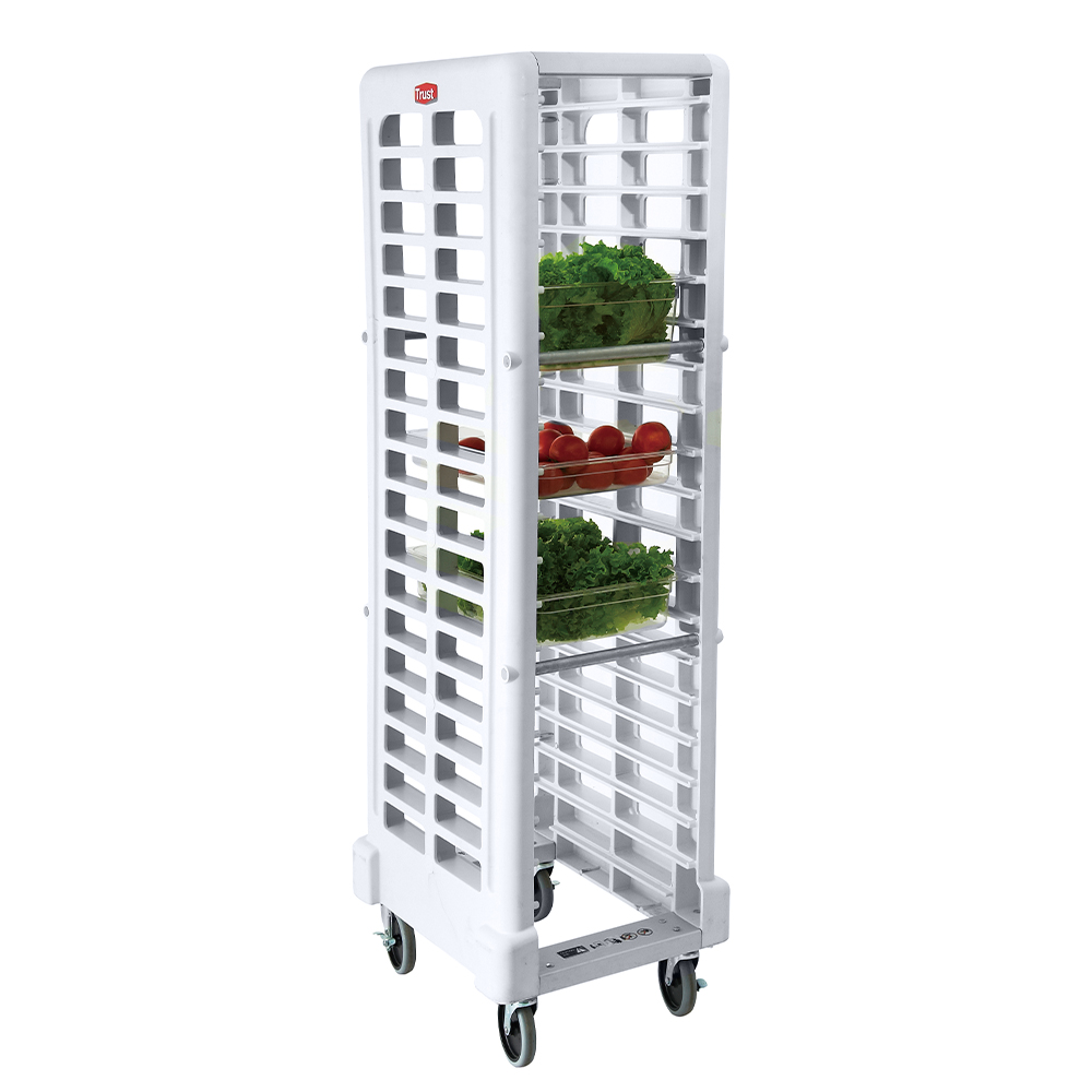 • 다양한 사이즈의서빙 트레이 및 푸드 박스와 함께 사용 가능하며, 중국, 유럽 및 미국 표준 규격의 푸드팬을 수납 가능한 다용도 랙/카트
