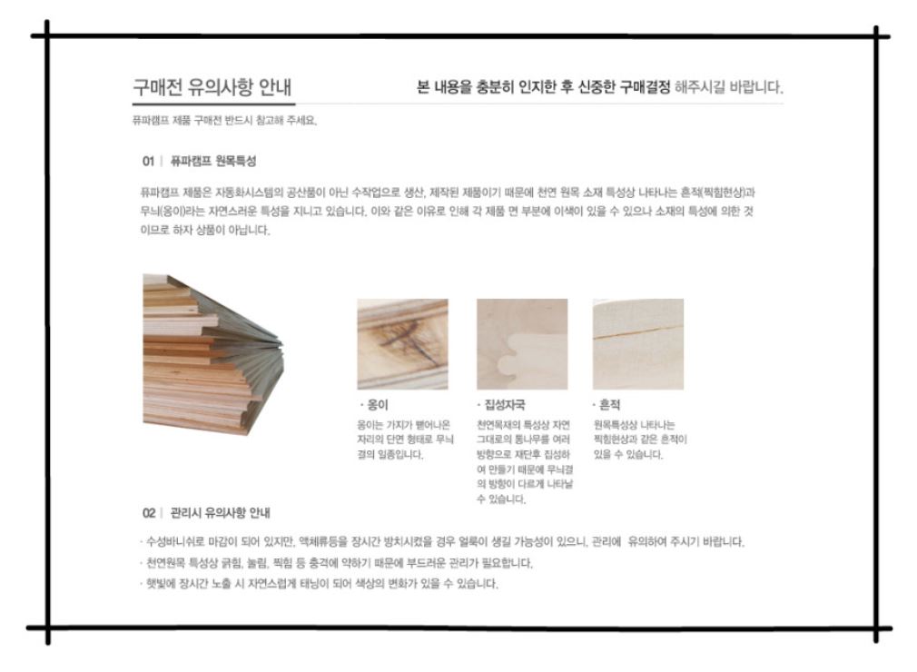 (찍힘현상)과 무늬(옹이)라는 자연스러운 특성을 지니고 있습니다.
