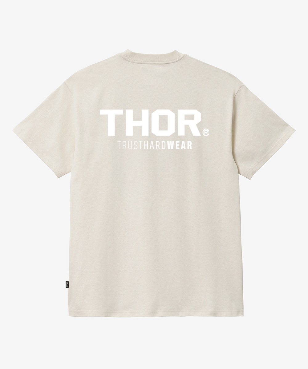 THOR CONTAINER만의 현대적인 로고 디자인을 더한 스트릿한 무드의 데일리 하프 티셔츠