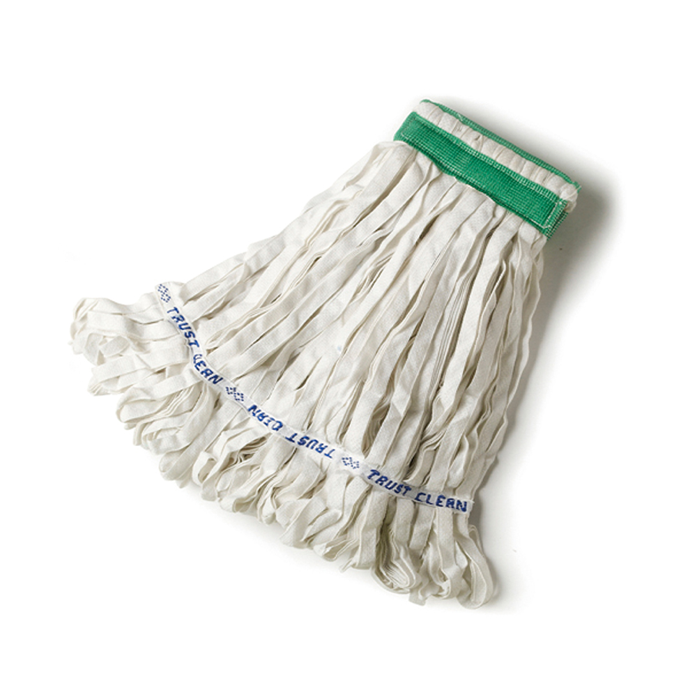 • 한번의 걸레질로 많은 바닥 면적을 처리할 수 있도록 걸레 끝이 둥글게 묶여 있고 테일밴드 처리가 된 제품